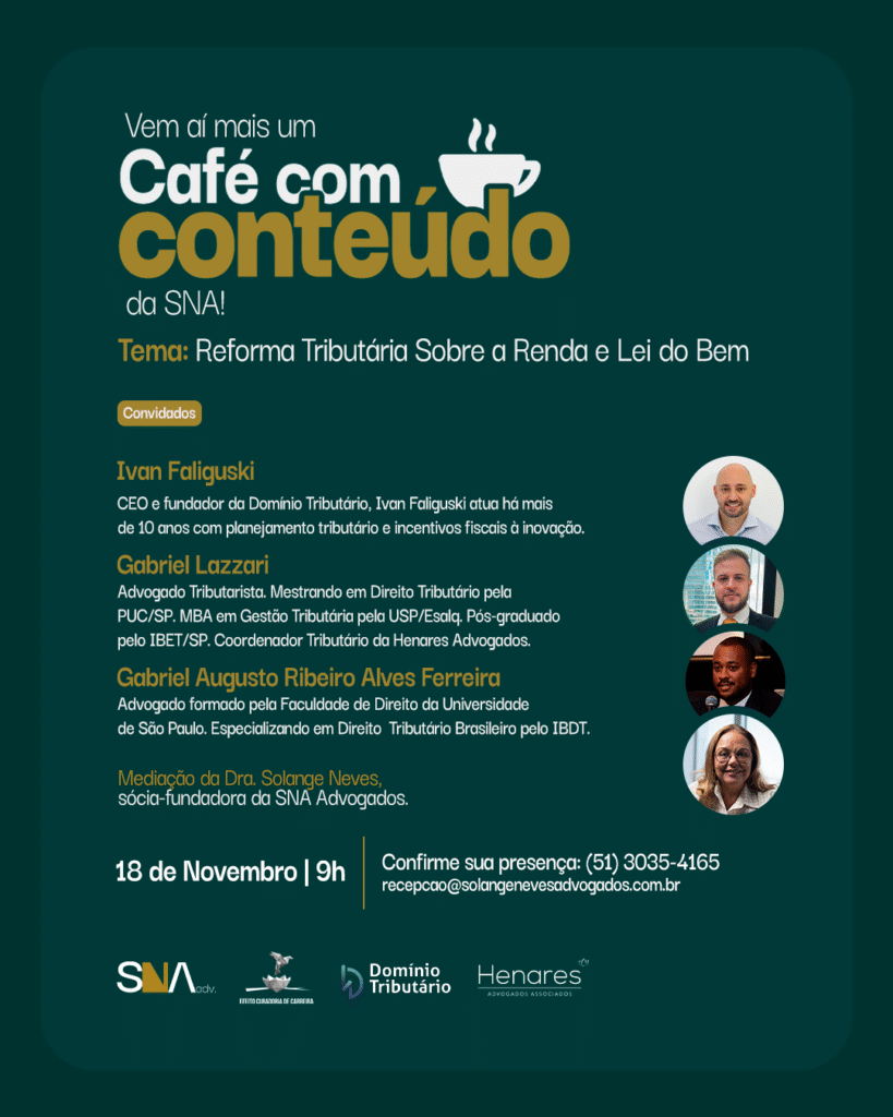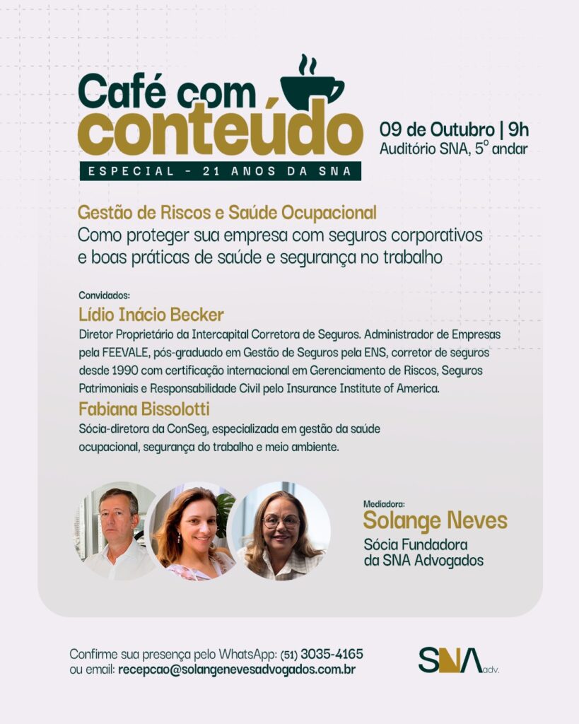 O evento também contará com o lançamento de obras jurídicas, incluindo “Mulheres em Famílias Empresárias”, coautoria de Solange Neves, além de um Happy Hour Musical com a pianista Olinda Alessandrini, na Fundação Scheffel.